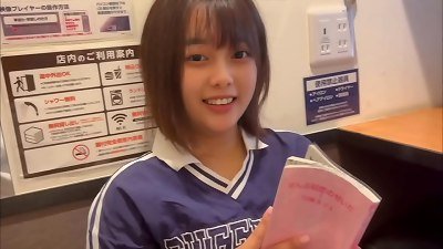 I give my tiny stepsister a super-cute tart's on the balcony while she chats to her boyfriend HL